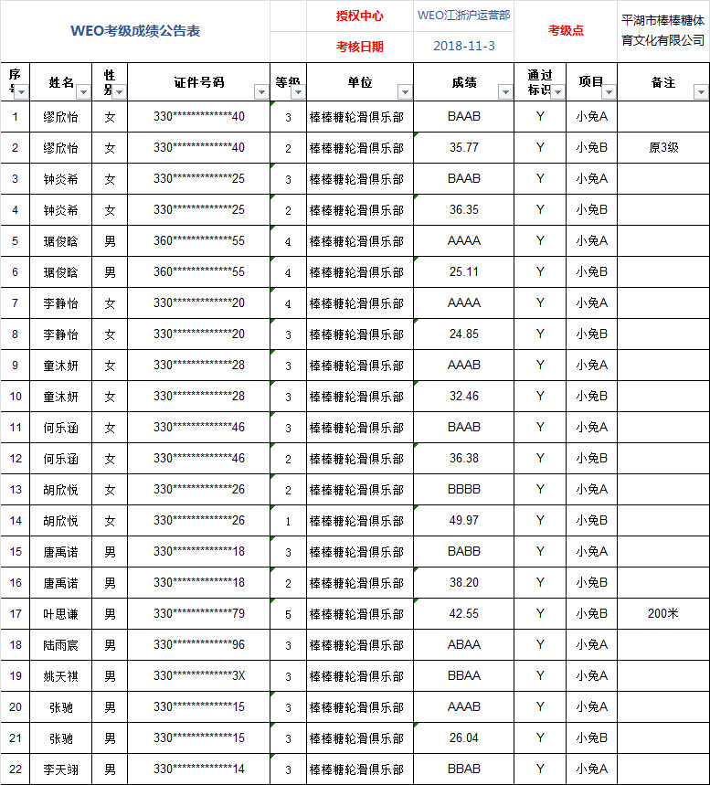 自本次成绩公告公示起,3个工作日内接受考级成绩申诉,咨询人:王博豪 15710141215