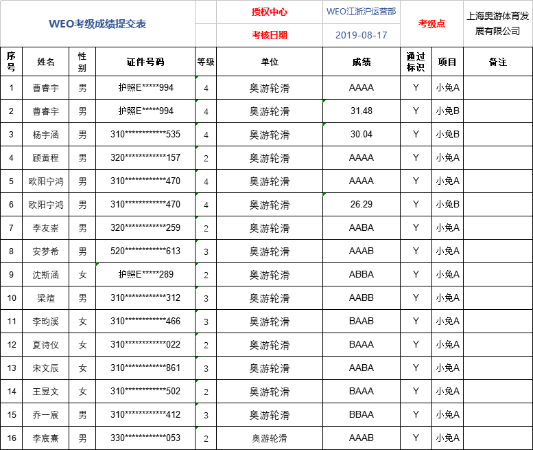 WEO轮滑等级考试